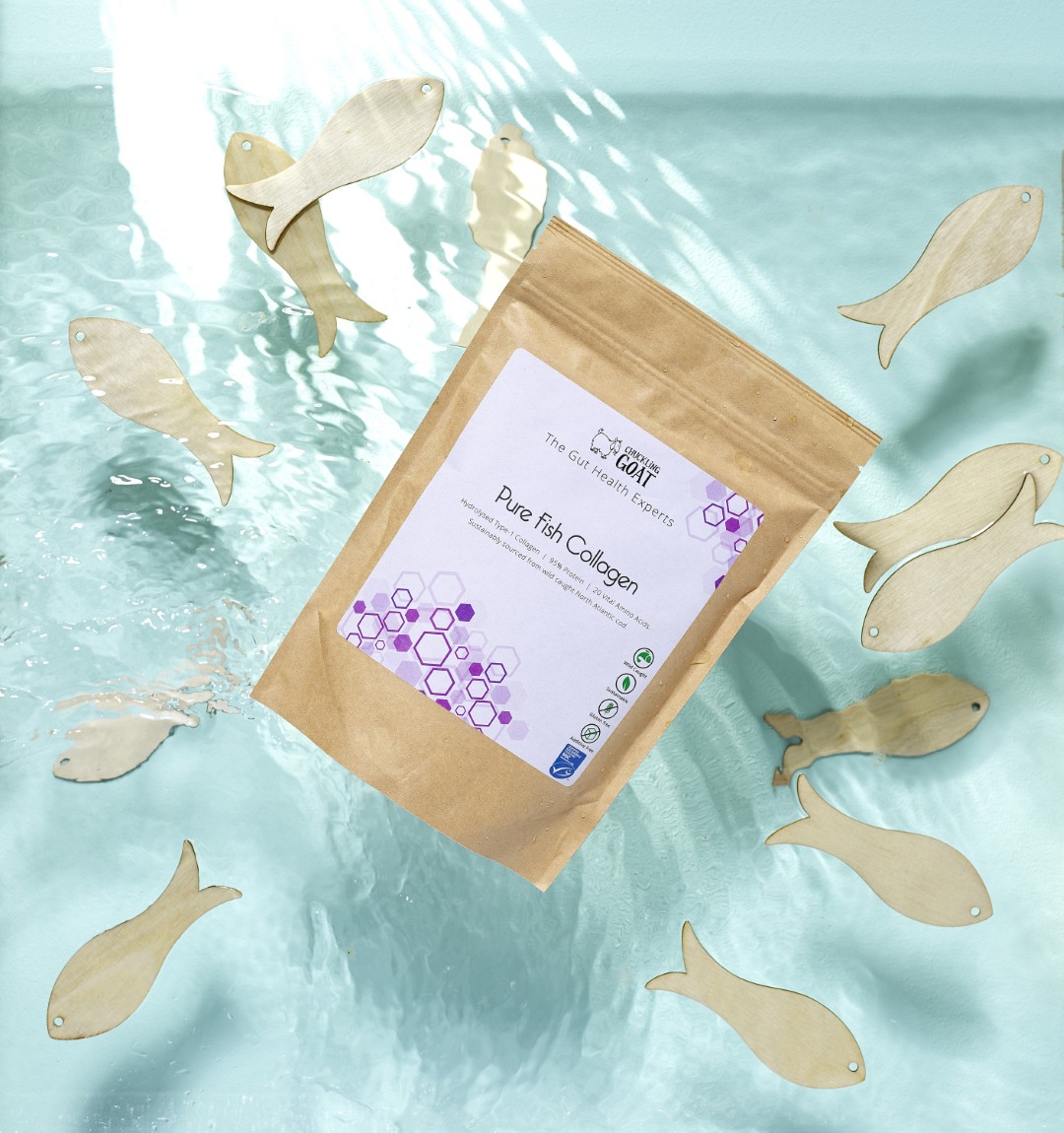 Experience the exceptional quality of our Pure Fish Collagen, a sustainable by-product of wild-caught North Atlantic cod. With a 95% protein content and 20 essential amino acids, it offers unparalleled bioavailability and purity. This hydrolysed type-1 collagen is sustainably sourced, ensuring both quality and environmental responsibility.